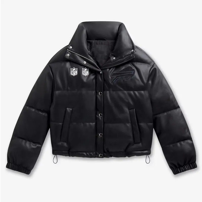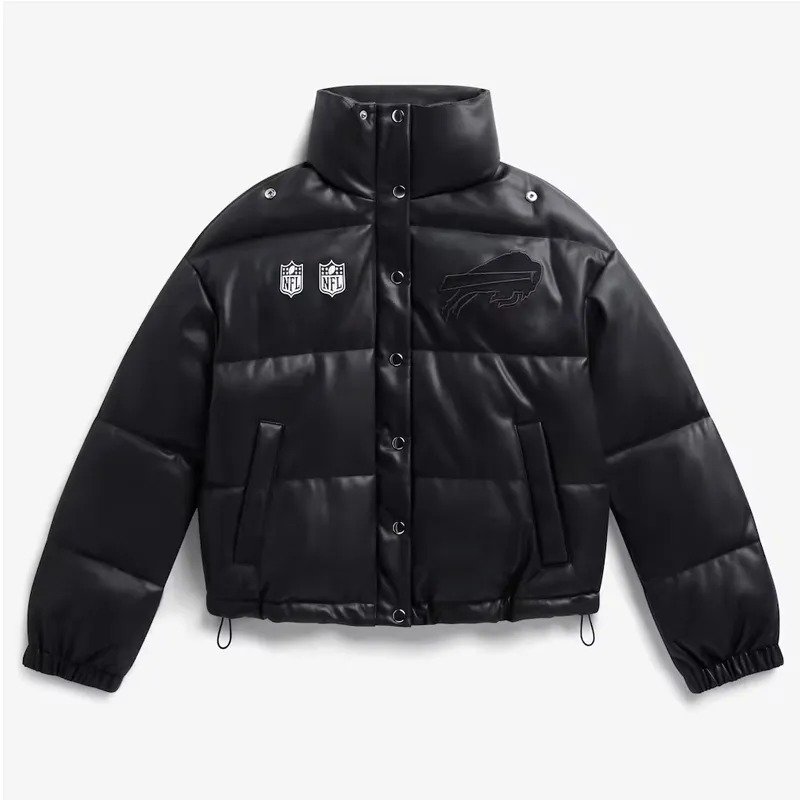 Buffalo Bills Off Season Black Leather Puffer Jacket