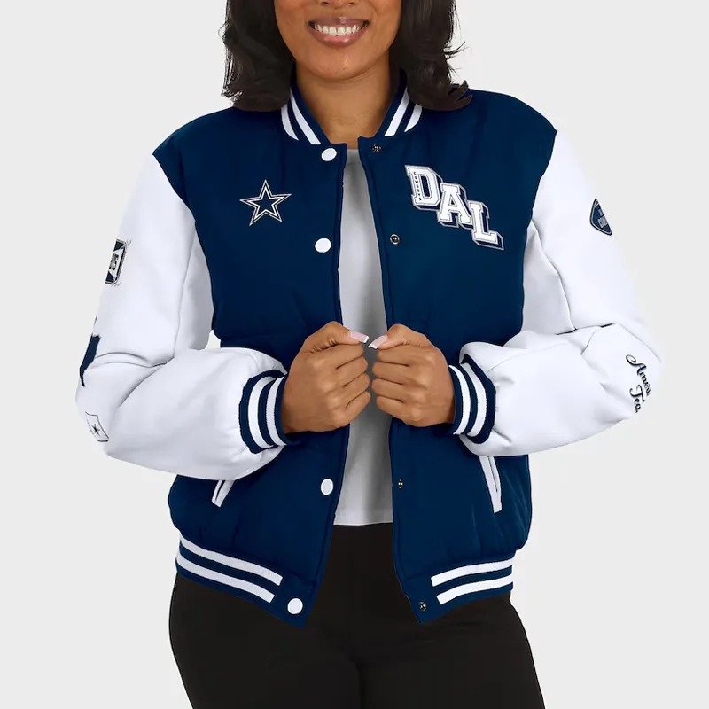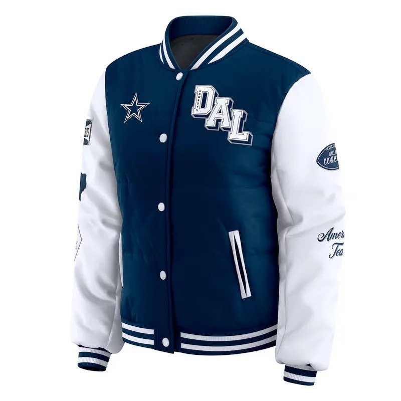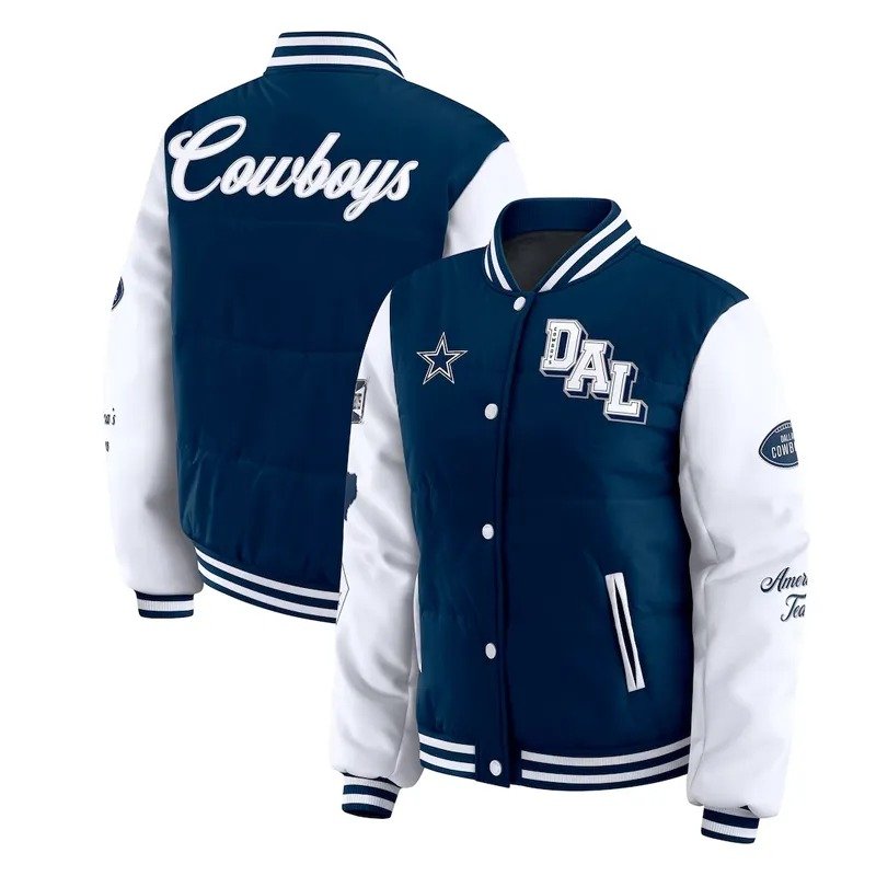 Dallas Cowboys Navy and White Puffer Full-Snap Jacket