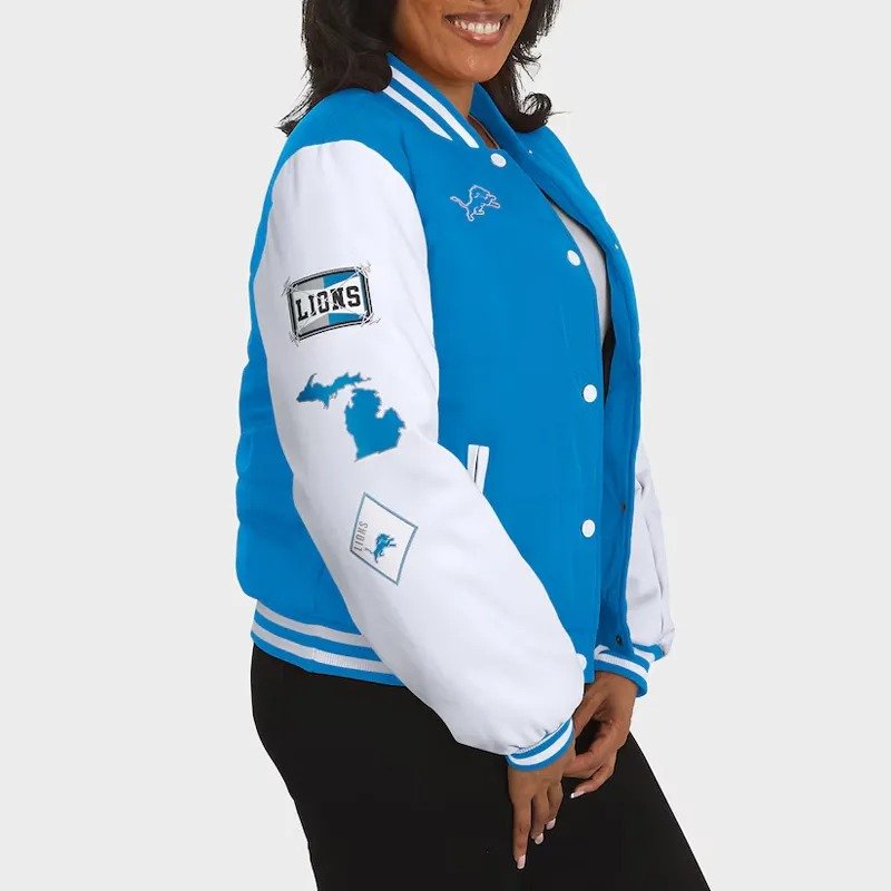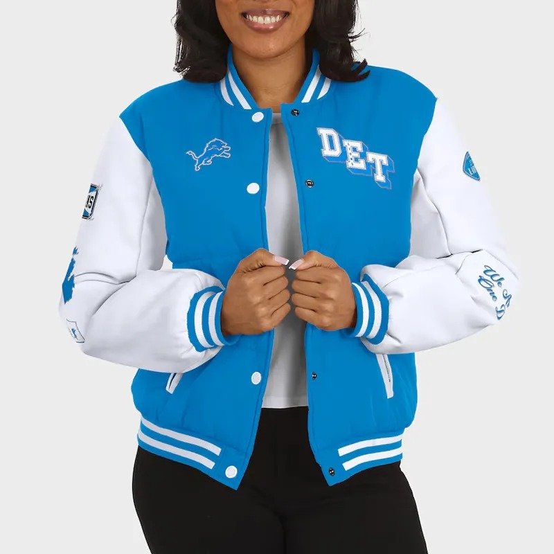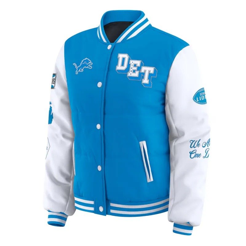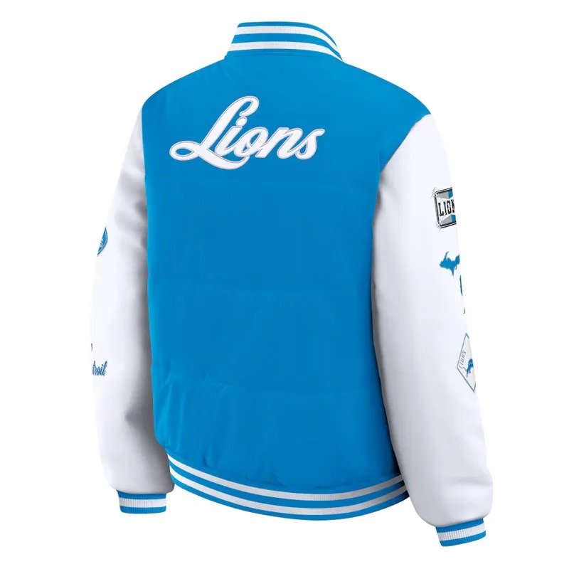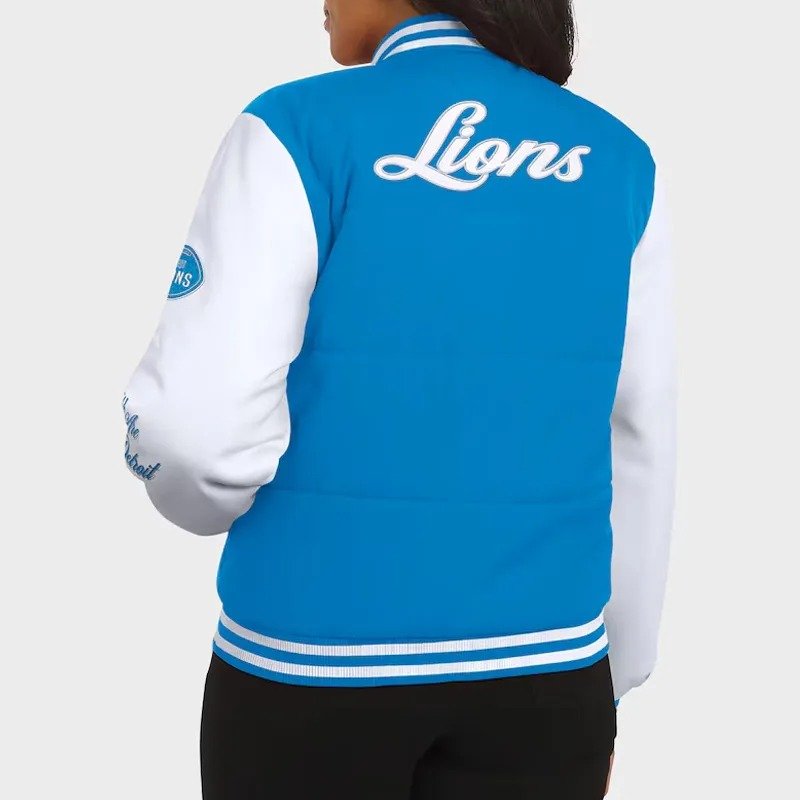 Detroit Lions Blue and White Puffer Full-Snap Jacket