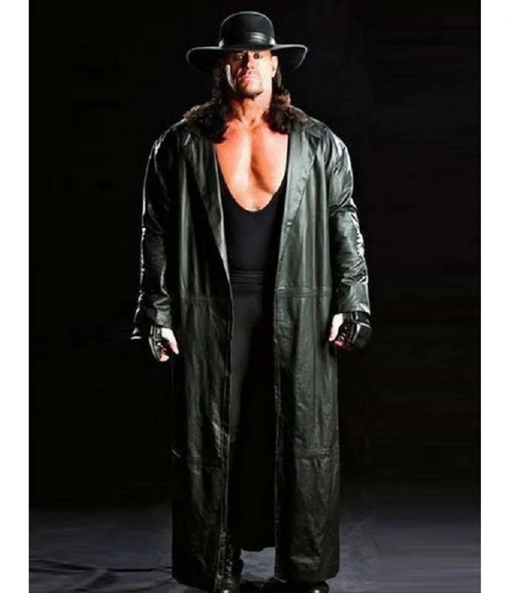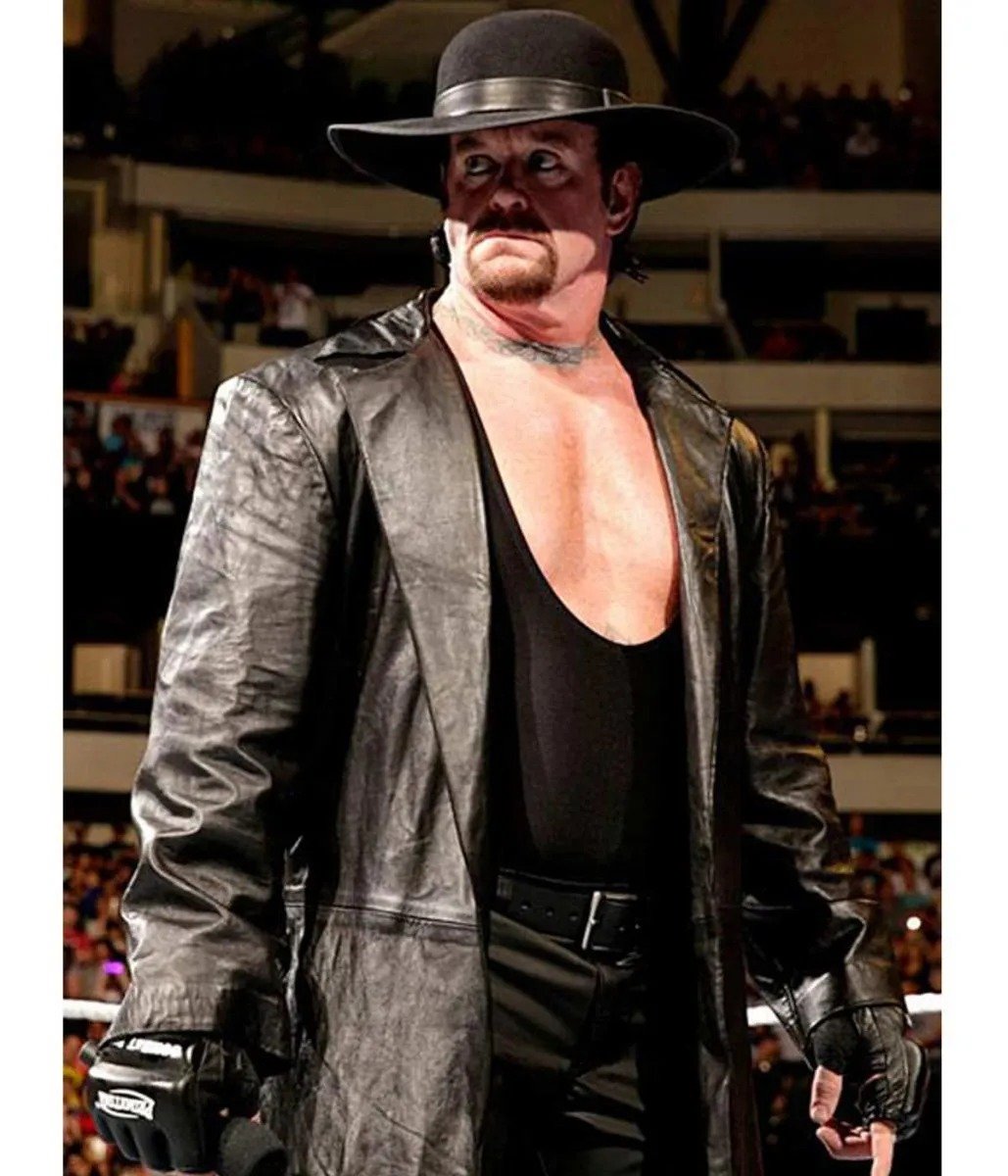 The Escape The Undertaker Mark Calaway Coat is a premium leather replica of the long black duster worn by WWE Hall of Famer Mark Calaway in the 2021 Netflix interactive film Escape The Undertaker. Inspired by The Undertaker’s signature Deadman persona – the undead, macabre character that defined an entire era of professional wrestling – this coat lets fans channel the same commanding presence and dark charisma that made The Undertaker a global icon for over three decades. Whether for cosplay, collection, or everyday edge, it brings the legendary aura of one of sports entertainment’s greatest legends straight to you.