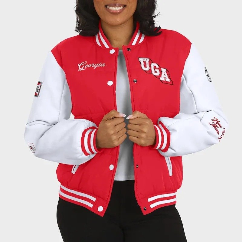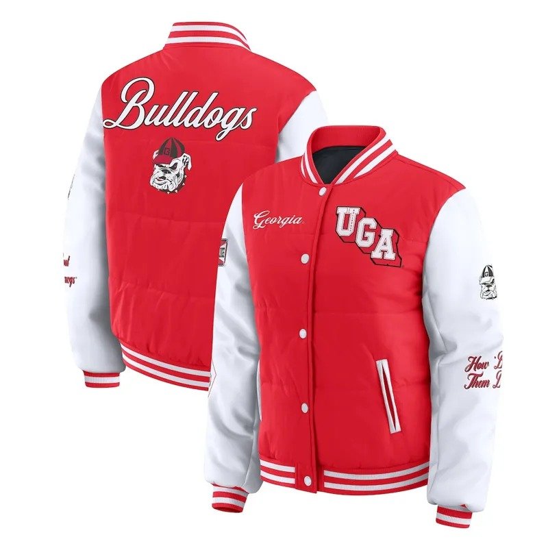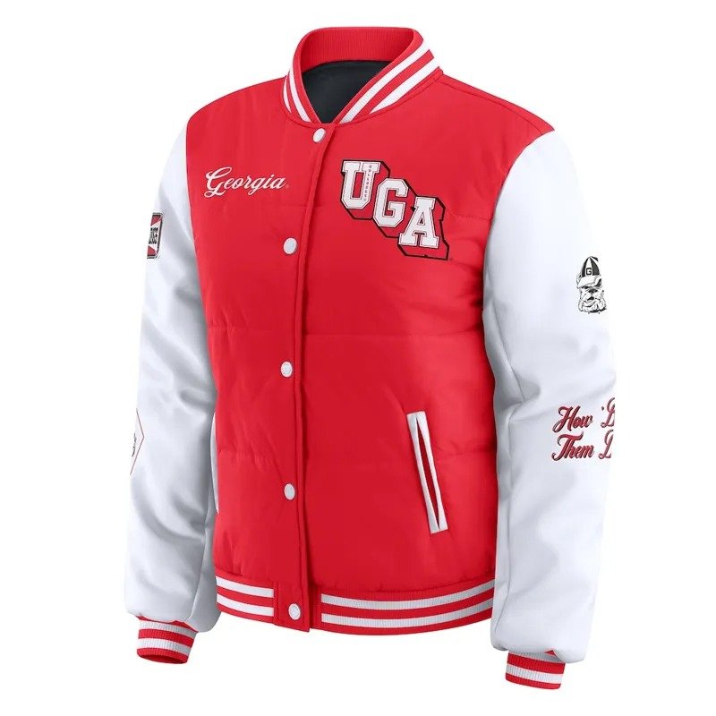 Georgia Bulldogs Red and White Puffer Full-Snap Jacket