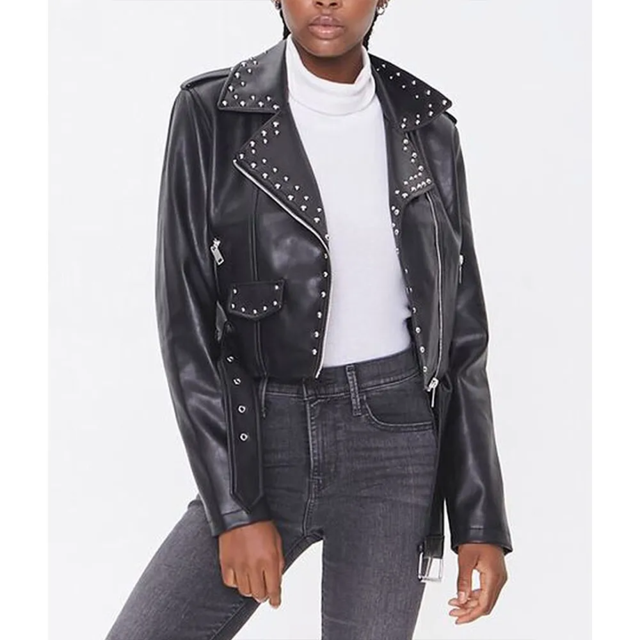 Lucifer S06 Brianna Hildebrand Studded Black Leather Jacket