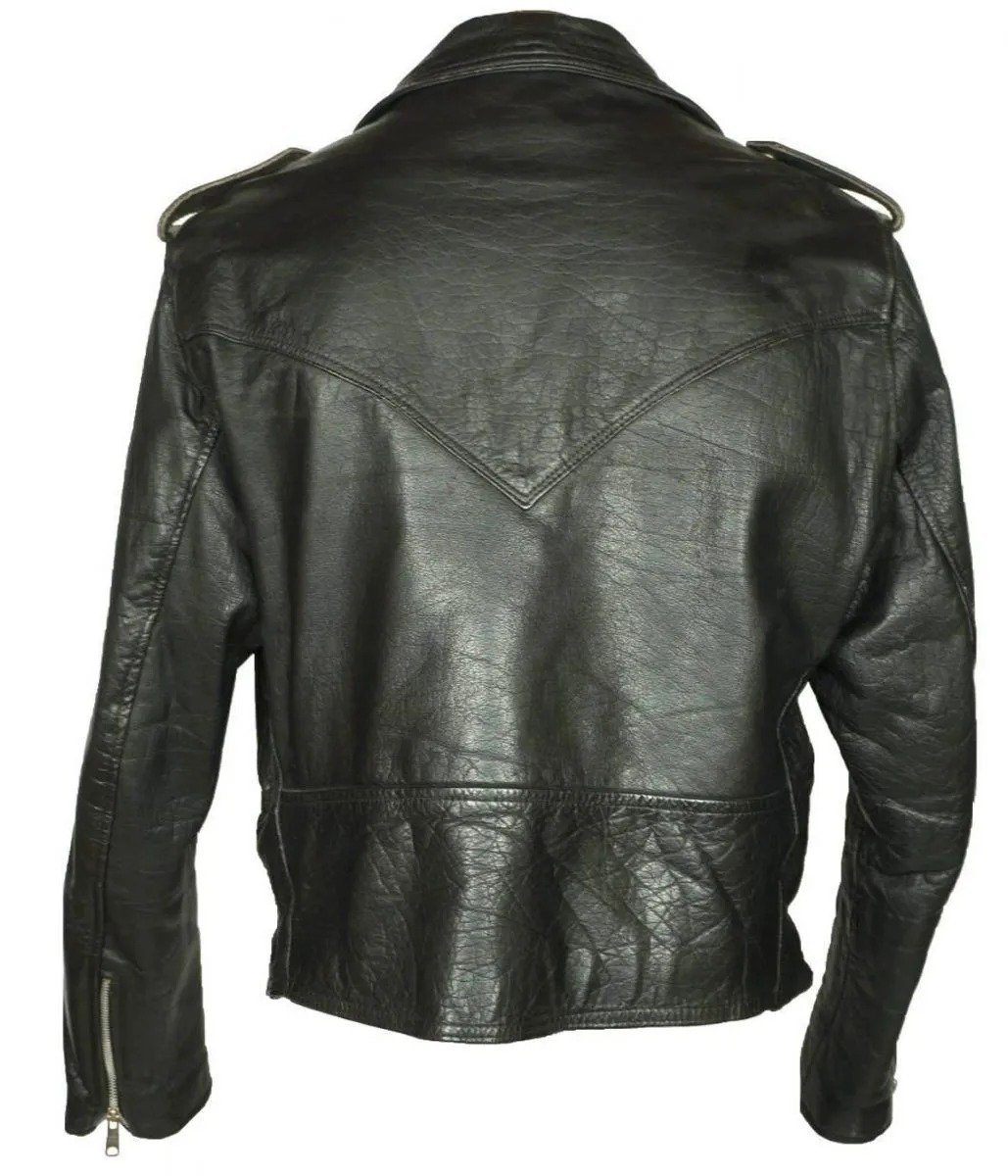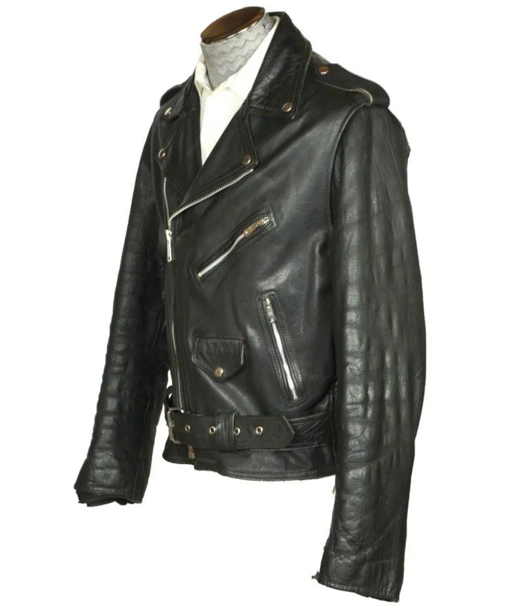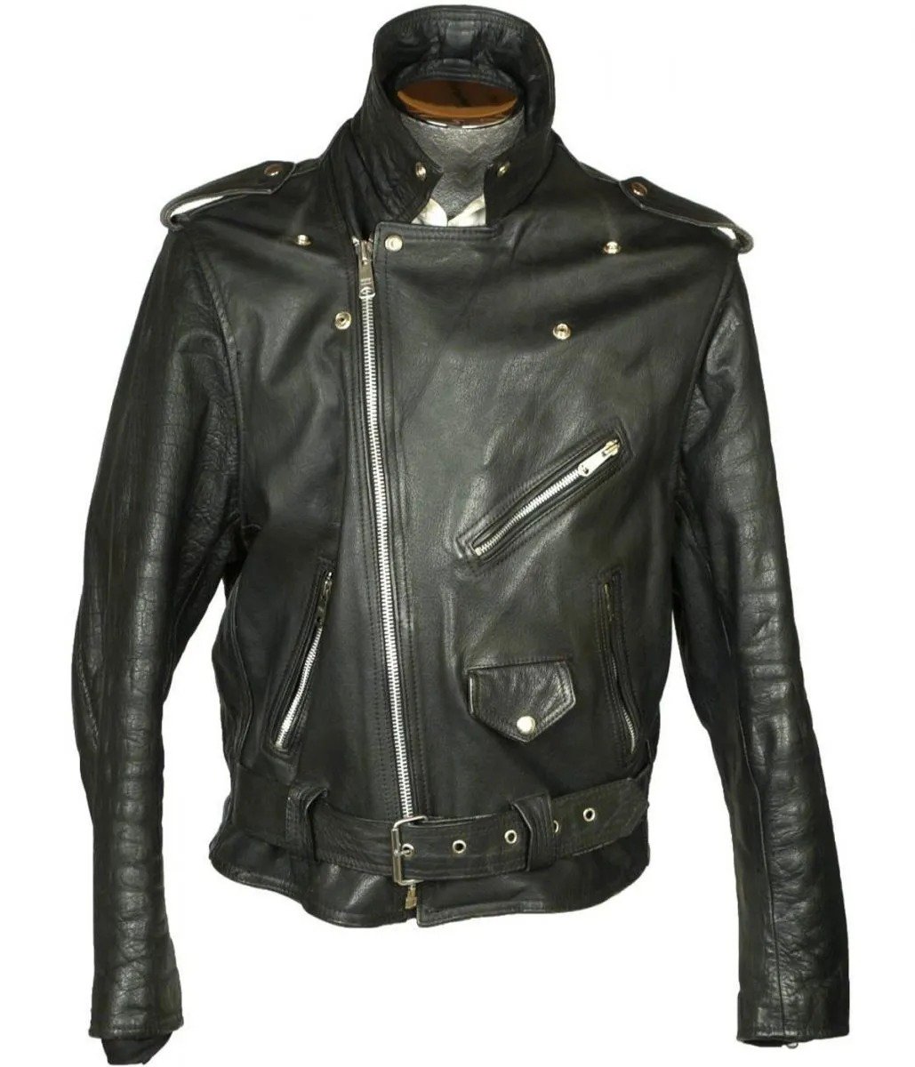 Men’s 1960s Motorcycle Belted Black Leather Jacket