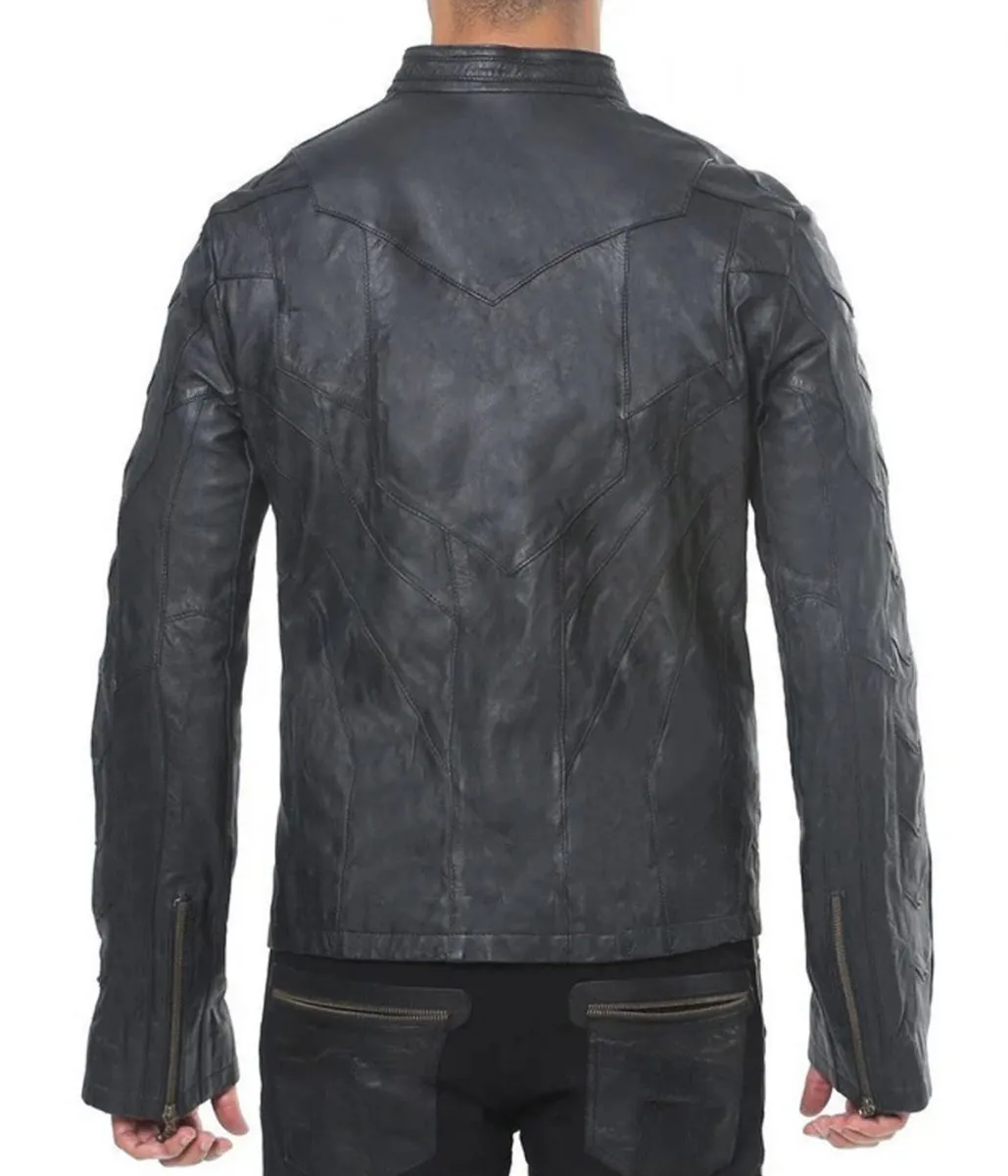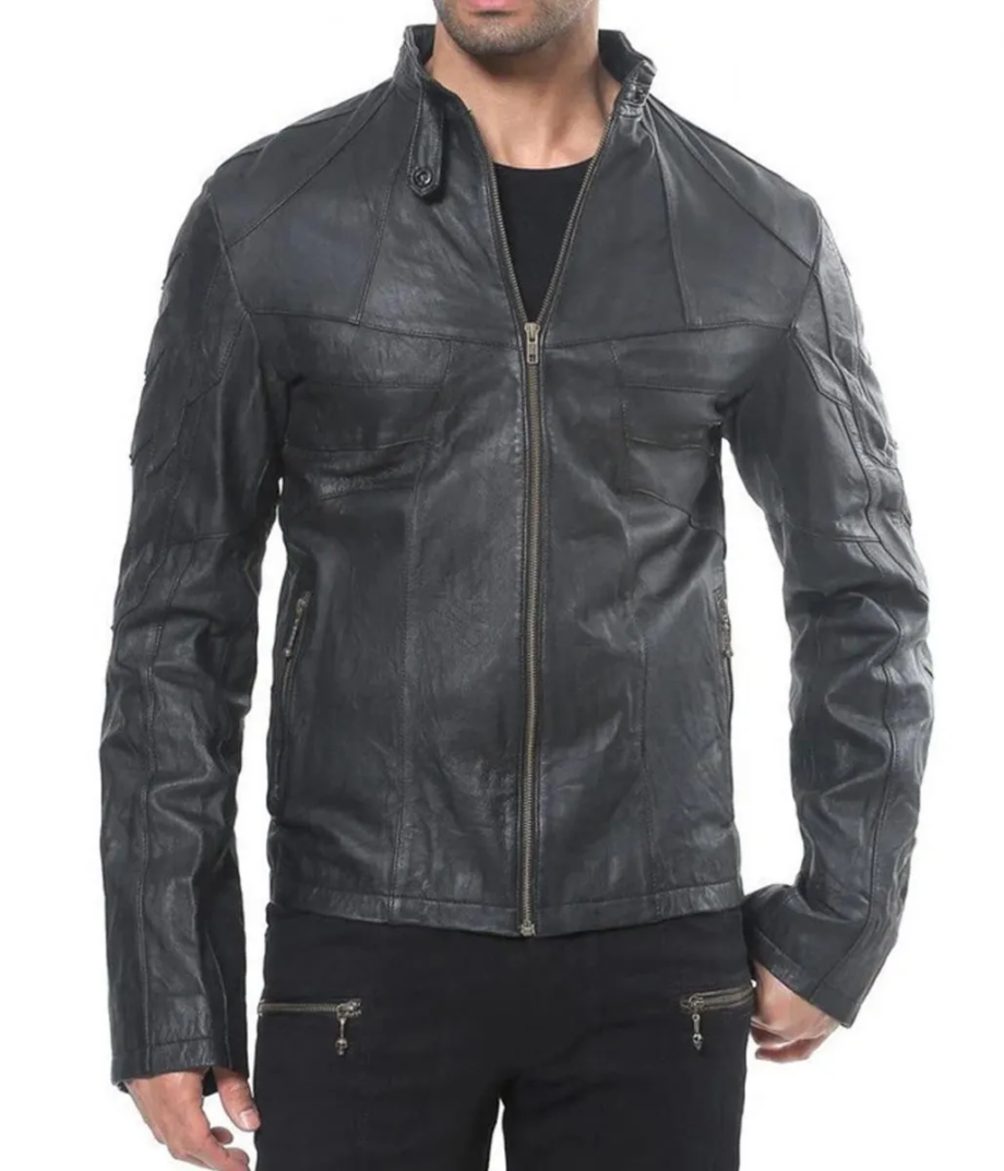Men’s Designer Studded Lambskin Black Leather Jacket with Front Pockets