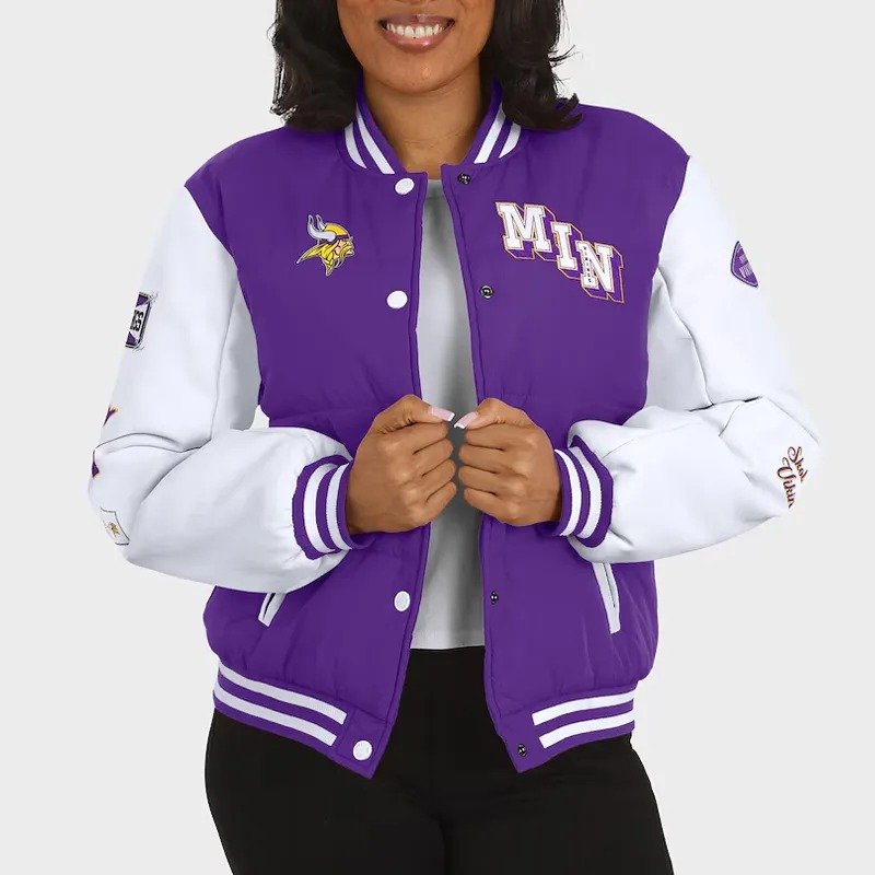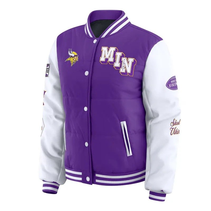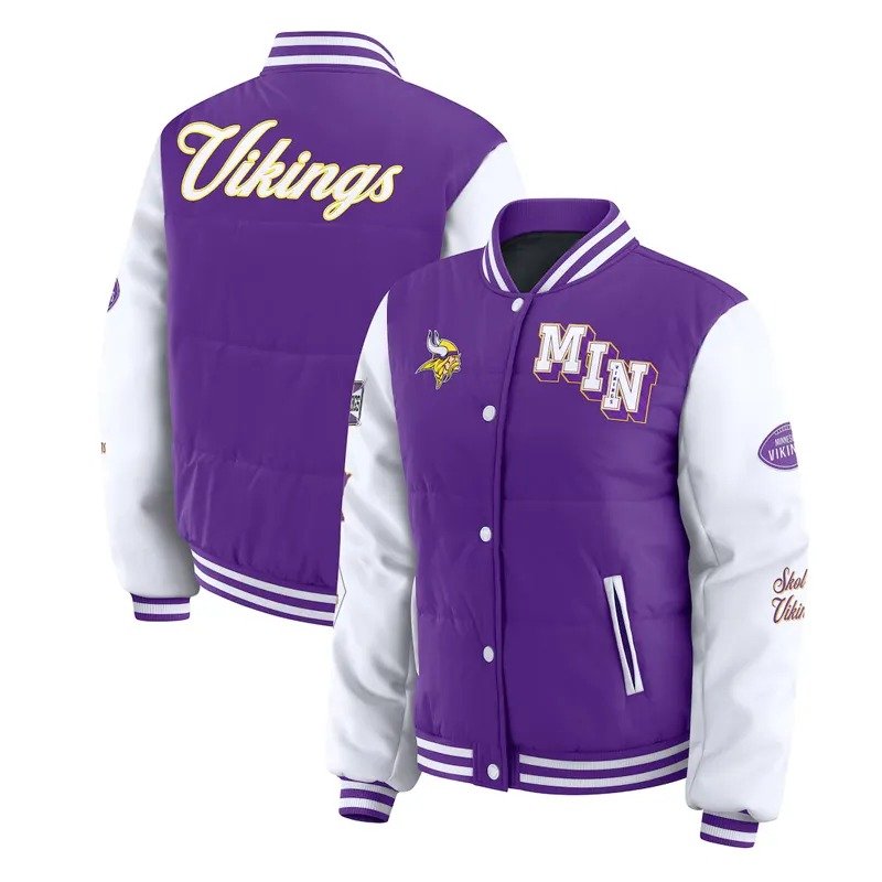 Minnesota Vikings Purple and White Puffer Full-Snap Jacket