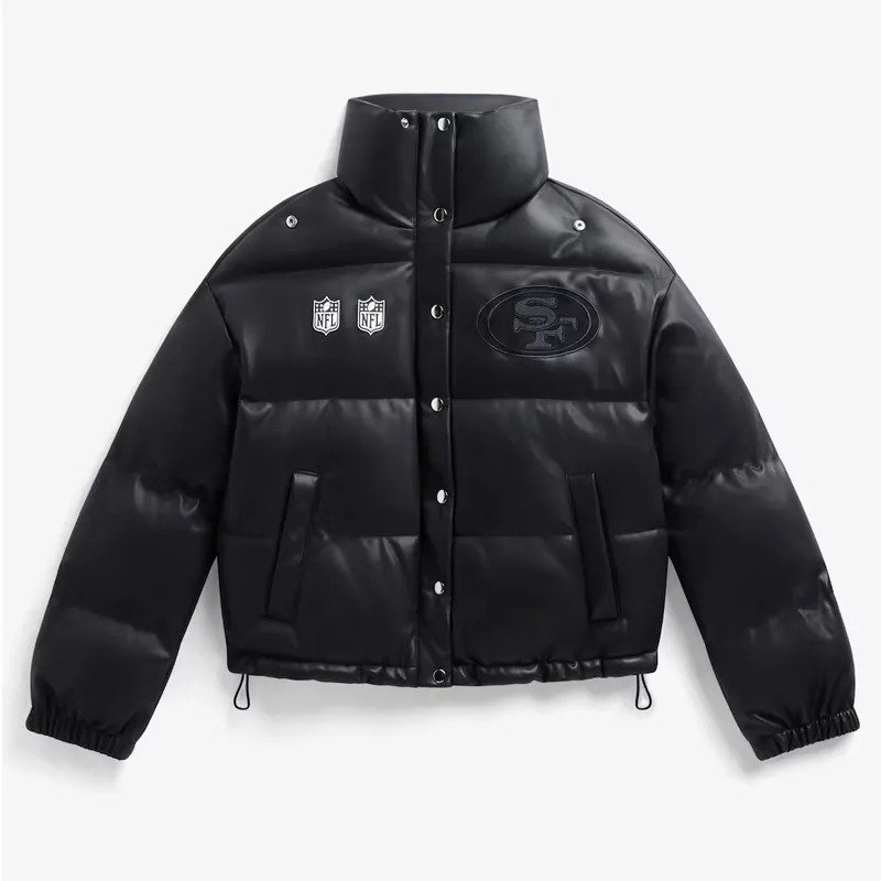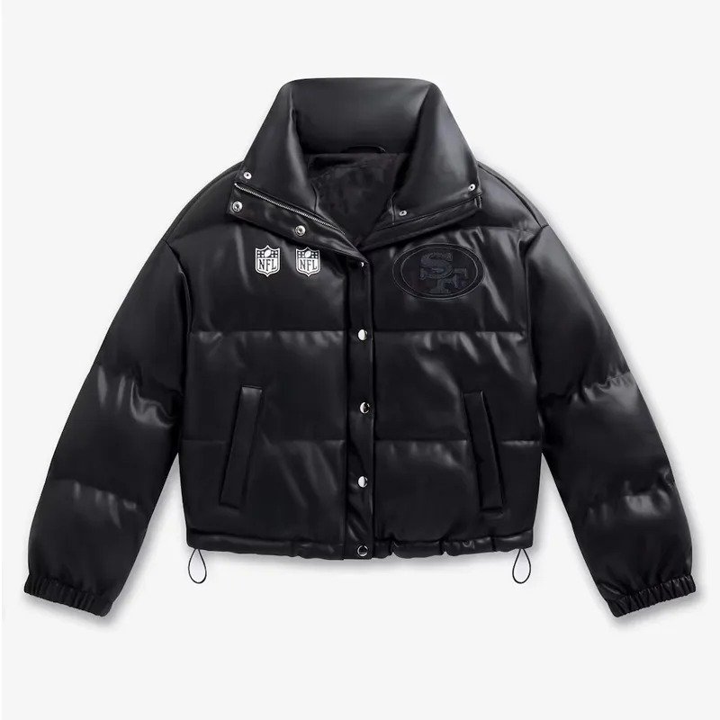 San Francisco 49ers Off Season Black Leather Puffer Jacket