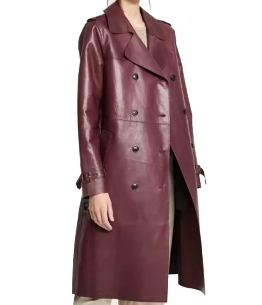 Women’s Burgundy Double Breasted Belted Coat